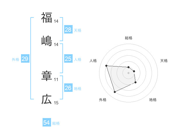 福嶋 章広さんを姓名の画数から五運を鑑定