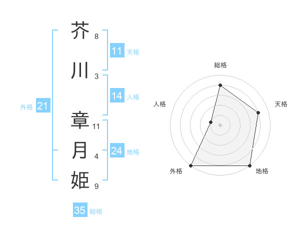 芥川 章月姫さんの総格は35画の4点!
