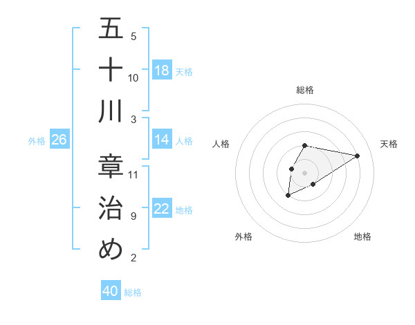 五十川 章治めさんを姓名の画数から五運を鑑定