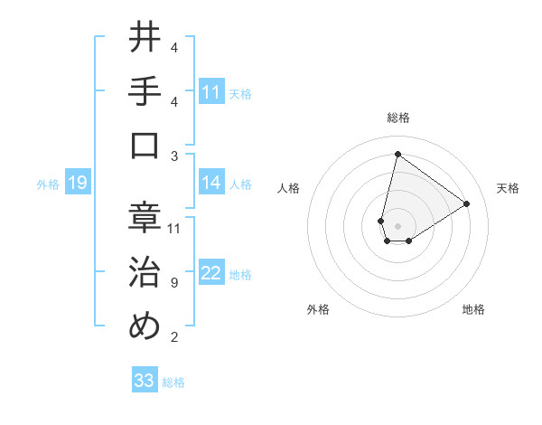 井手口 章治めさんを姓名の画数から五運を鑑定