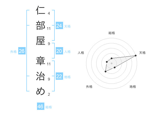 仁部屋 章治めさんの天格は24画の5点!