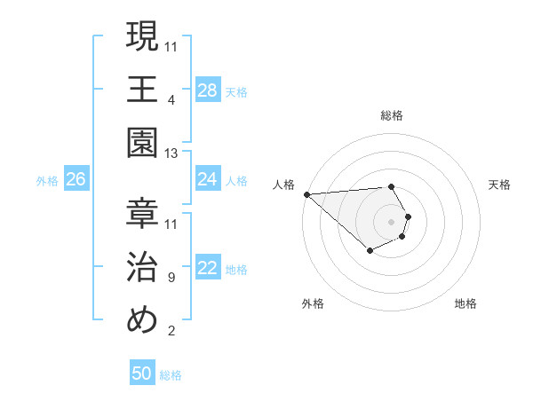 現王園 章治めさんを姓名の画数から五運を鑑定