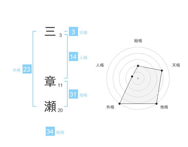 三 章瀬さんの総格は34画の2点!