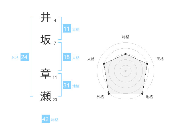 井坂 章瀬さんの総格は42画の3点!