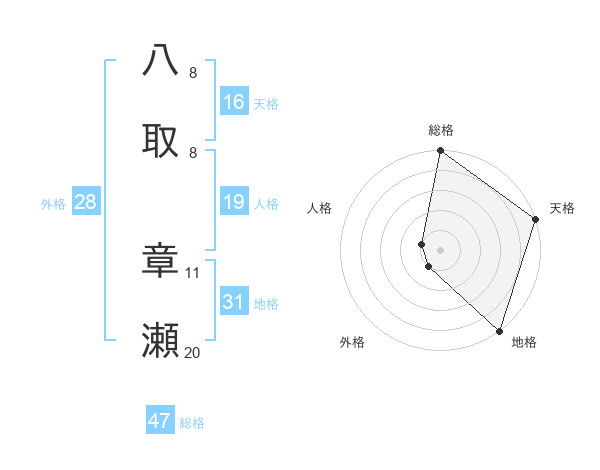 八取 章瀬さんを姓名の画数から五運を鑑定