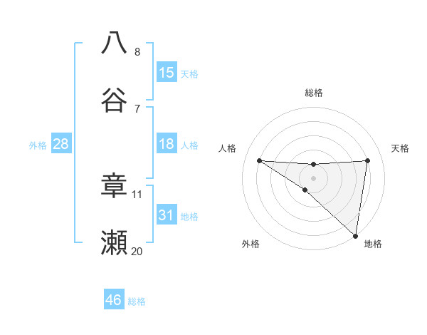 八谷 章瀬さんの総格は46画の1点!
