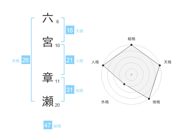六宮 章瀬さんの総格は47画の5点!