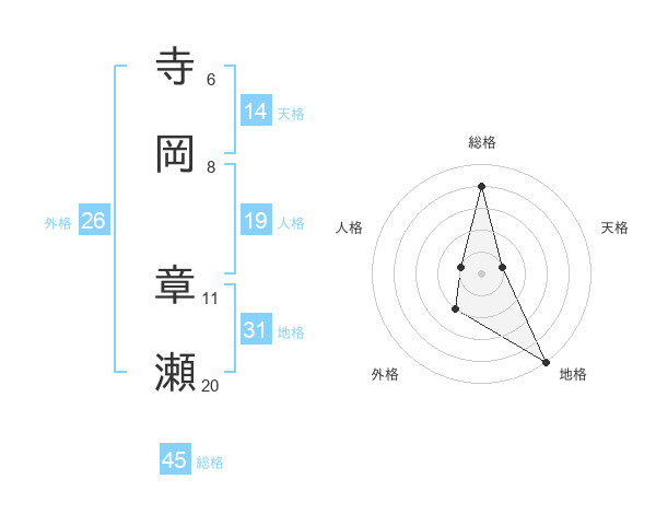 寺岡 章瀬さんの地格は31画の5点!