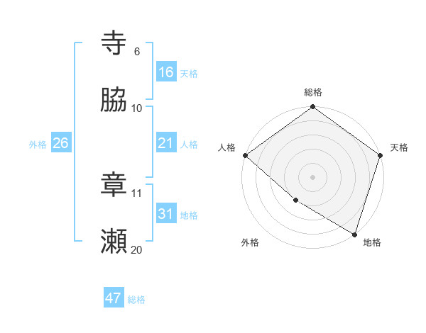寺脇 章瀬さんの地格は31画の5点!