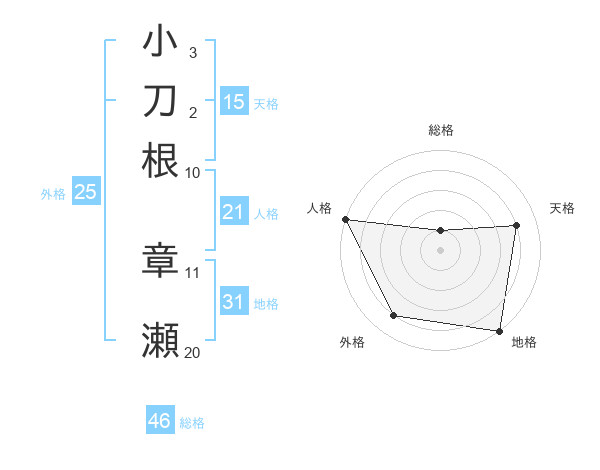 小刀根 章瀬さんの地格は31画の5点!
