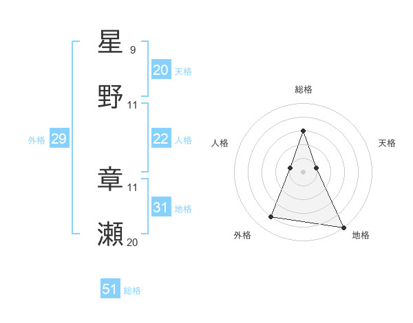 星野 章瀬さんを姓名の画数から五運を鑑定