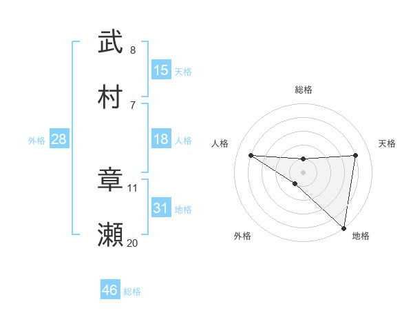 武村 章瀬さんの天格は15画の4点!