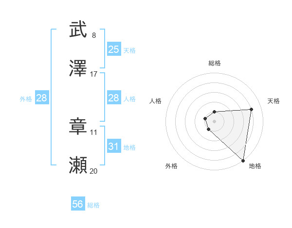 武澤 章瀬さんを姓名の画数から五運を鑑定