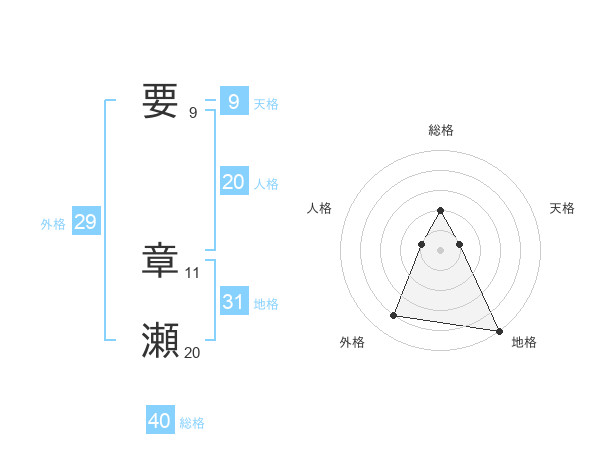 要 章瀬さんの総格は40画の2点!
