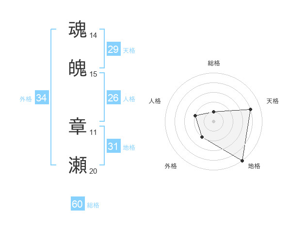 魂魄 章瀬さんの総格は60画の1点!