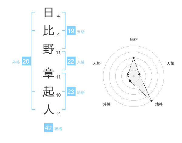 日比野 章起人さんを姓名の画数から五運を鑑定