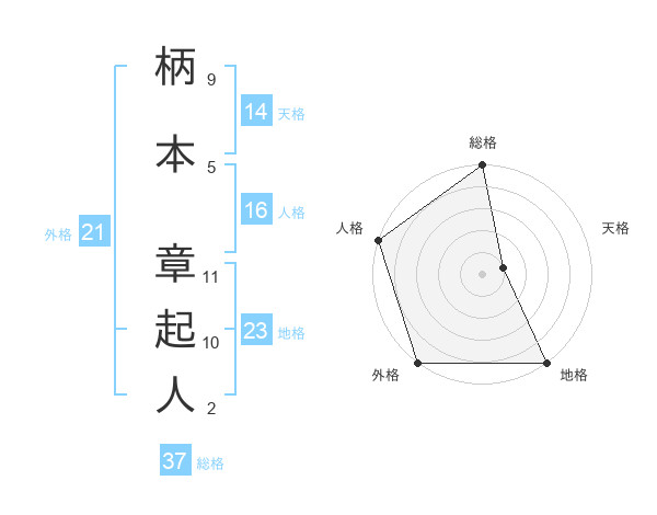 柄本 章起人さんの総格は37画の5点!