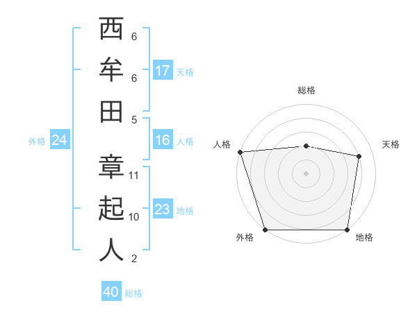 西牟田 章起人さんの外格は24画の5点!