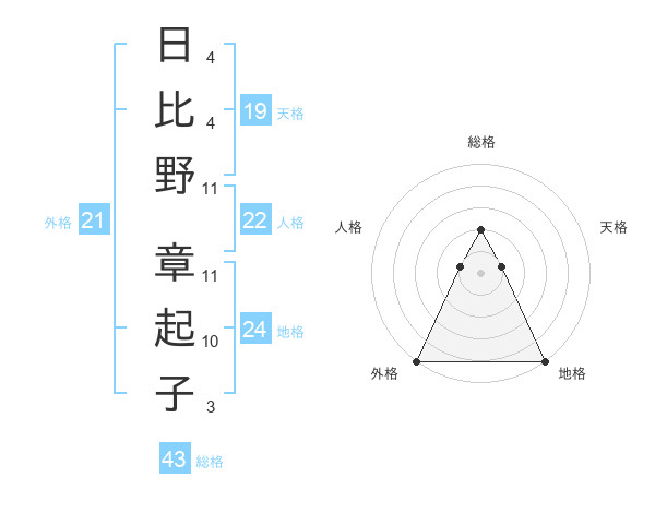 日比野 章起子さんを姓名の画数から五運を鑑定