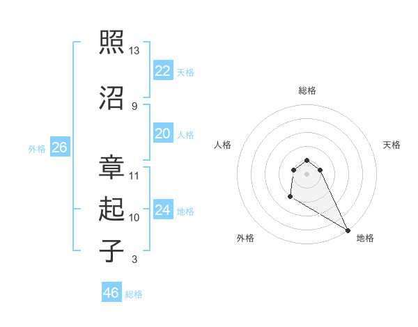 照沼 章起子さんを姓名の画数から五運を鑑定