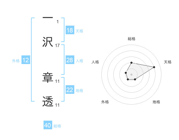 一沢 章透さんの地格は22画の1点!