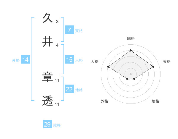 久井 章透さんの総格は29画の4点!