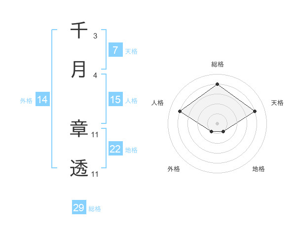 千月 章透さんの総格は29画の4点!