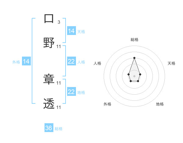 口野 章透さんの地格は22画の1点!