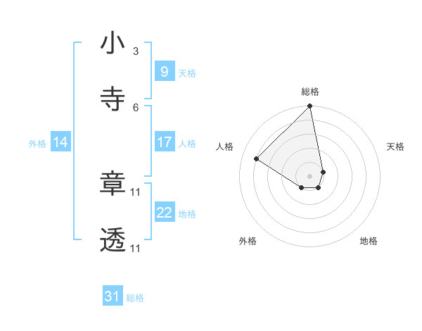 小寺 章透さんの総格は31画の5点