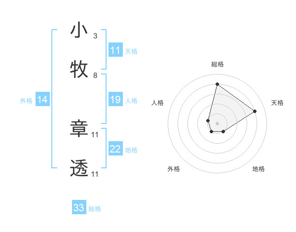 小牧 章透さんの総格は33画の4点!