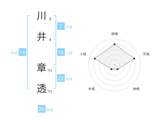 川井 章透さんの総格は29画の4点!
