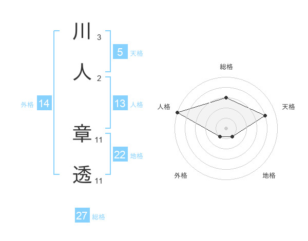 川人 章透さんの総格は27画の3点!
