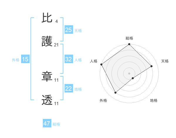 比護 章透さんの総格は47画の5点!