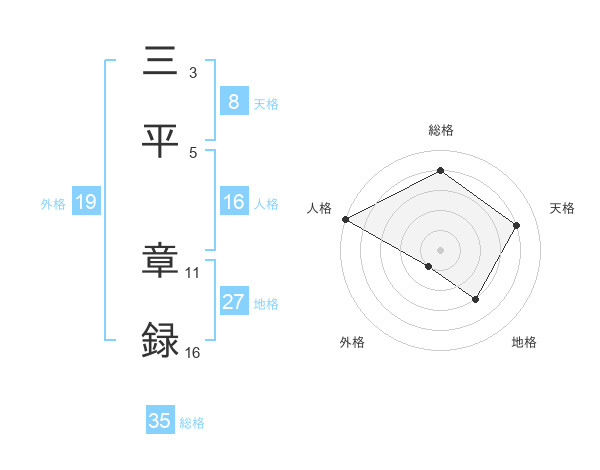 三平 章録さんの総格は35画の4点!