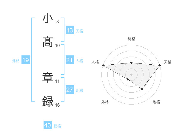 小髙 章録さんの天格は13画の5点!