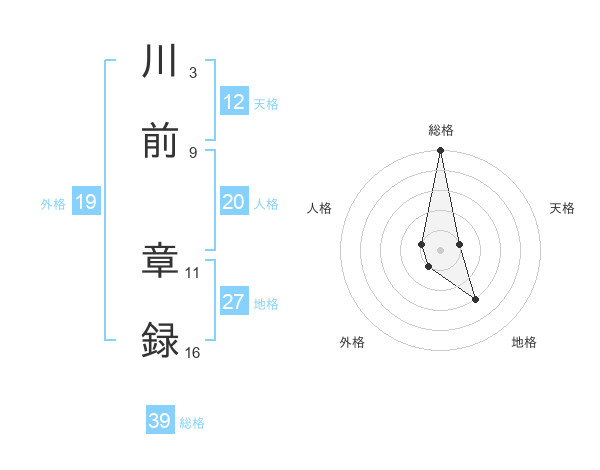 川前 章録さんの総格は39画の5点!