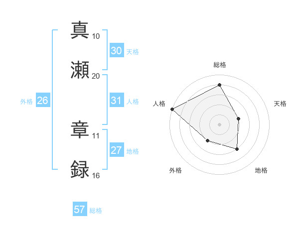 真瀬 章録さんを姓名の画数から五運を鑑定