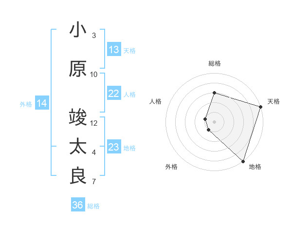 小原 竣太良さんを姓名の画数から五運を鑑定