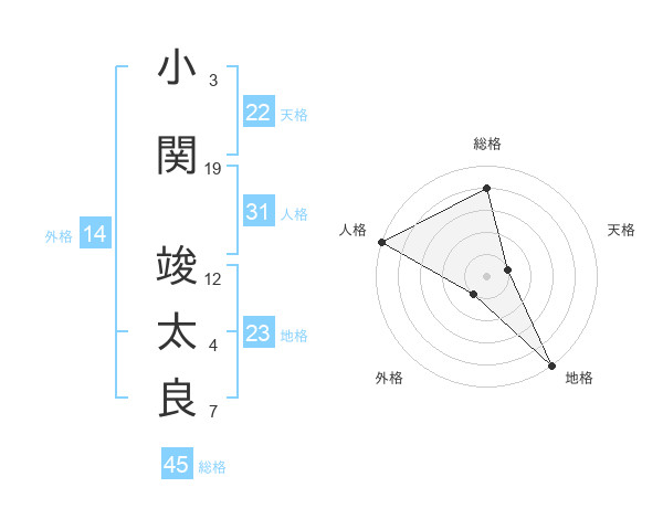 小関 竣太良さんを姓名の画数から五運を鑑定