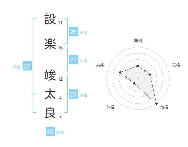 設楽 竣太良さんを姓名の画数から五運を鑑定