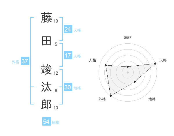 藤田 竣汰郎さんを姓名の画数から五運を鑑定