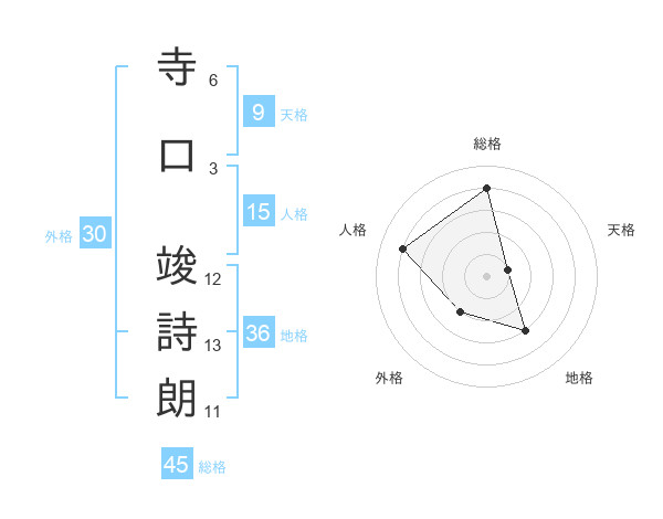 寺口 竣詩朗さんの総格は45画の4点!