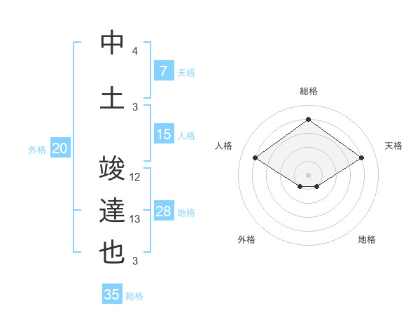 中土 竣達也さんを姓名の画数から五運を鑑定