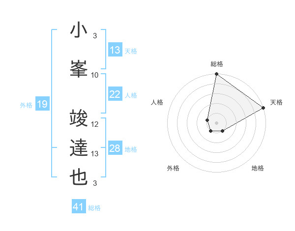 小峯 竣達也さんを姓名の画数から五運を鑑定