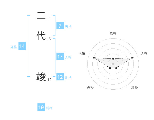 二代 竣さんの外格は14画の1点!