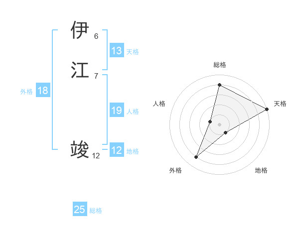 伊江 竣さんの天格は13画の5点!