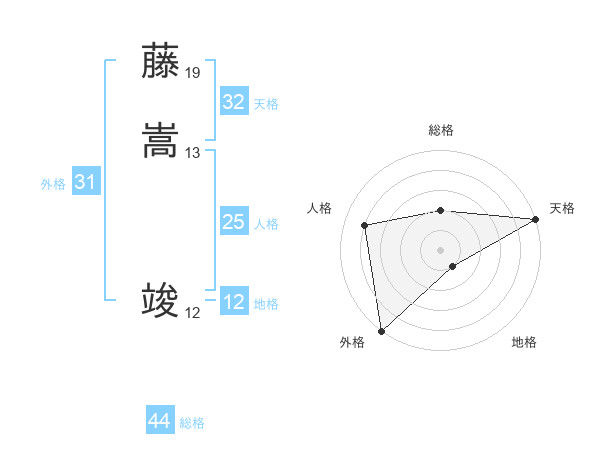 藤嵩 竣さんを姓名の画数から五運を鑑定
