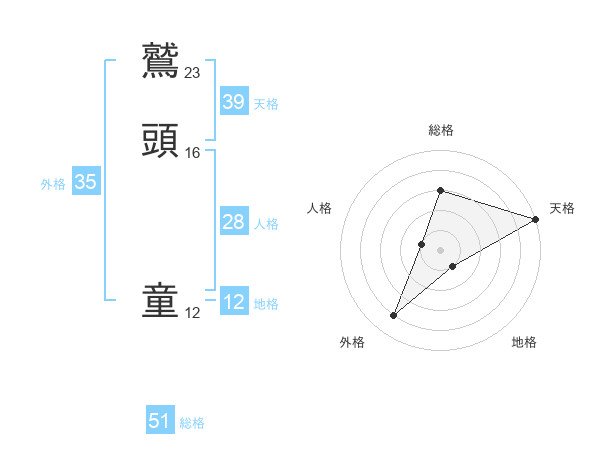 鷲頭 童さんの総格は51画の3点!