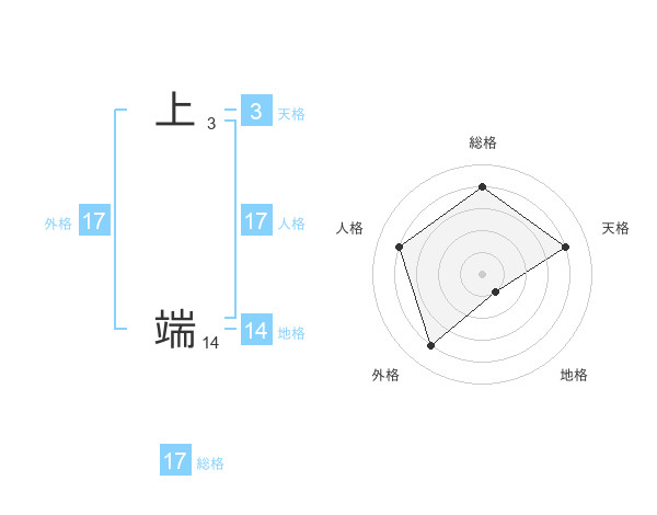 上 端さんの総格は17画の4点!