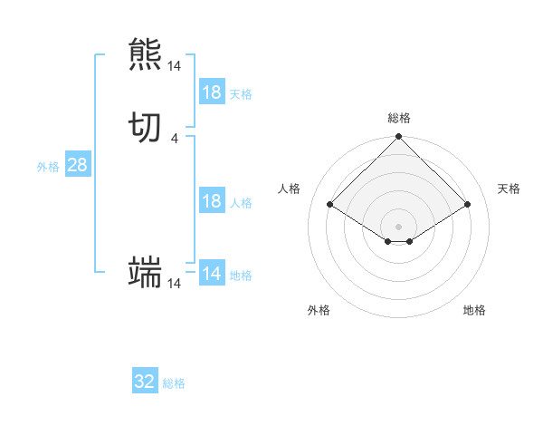 熊切 端さんの天格は18画の4点!